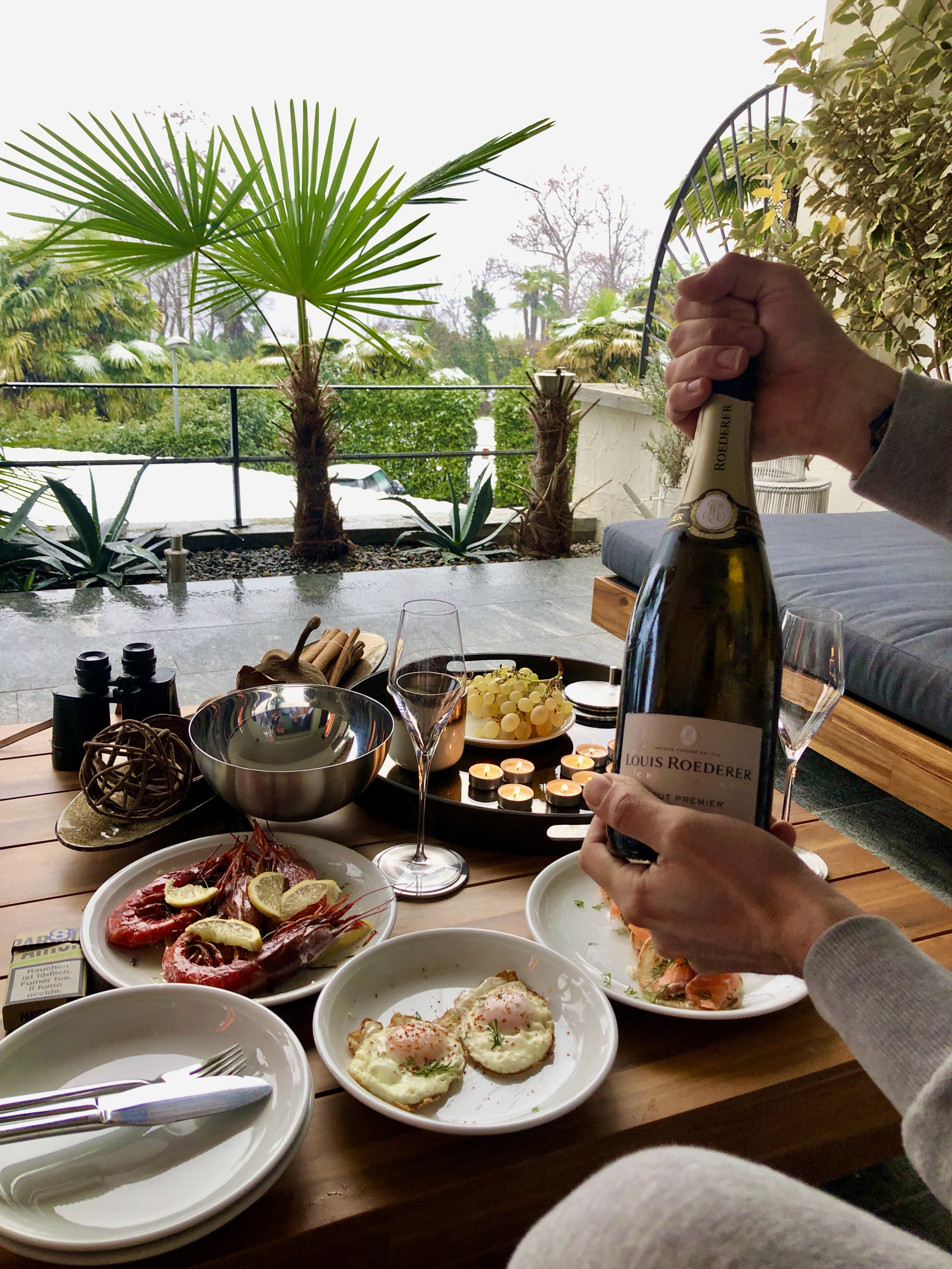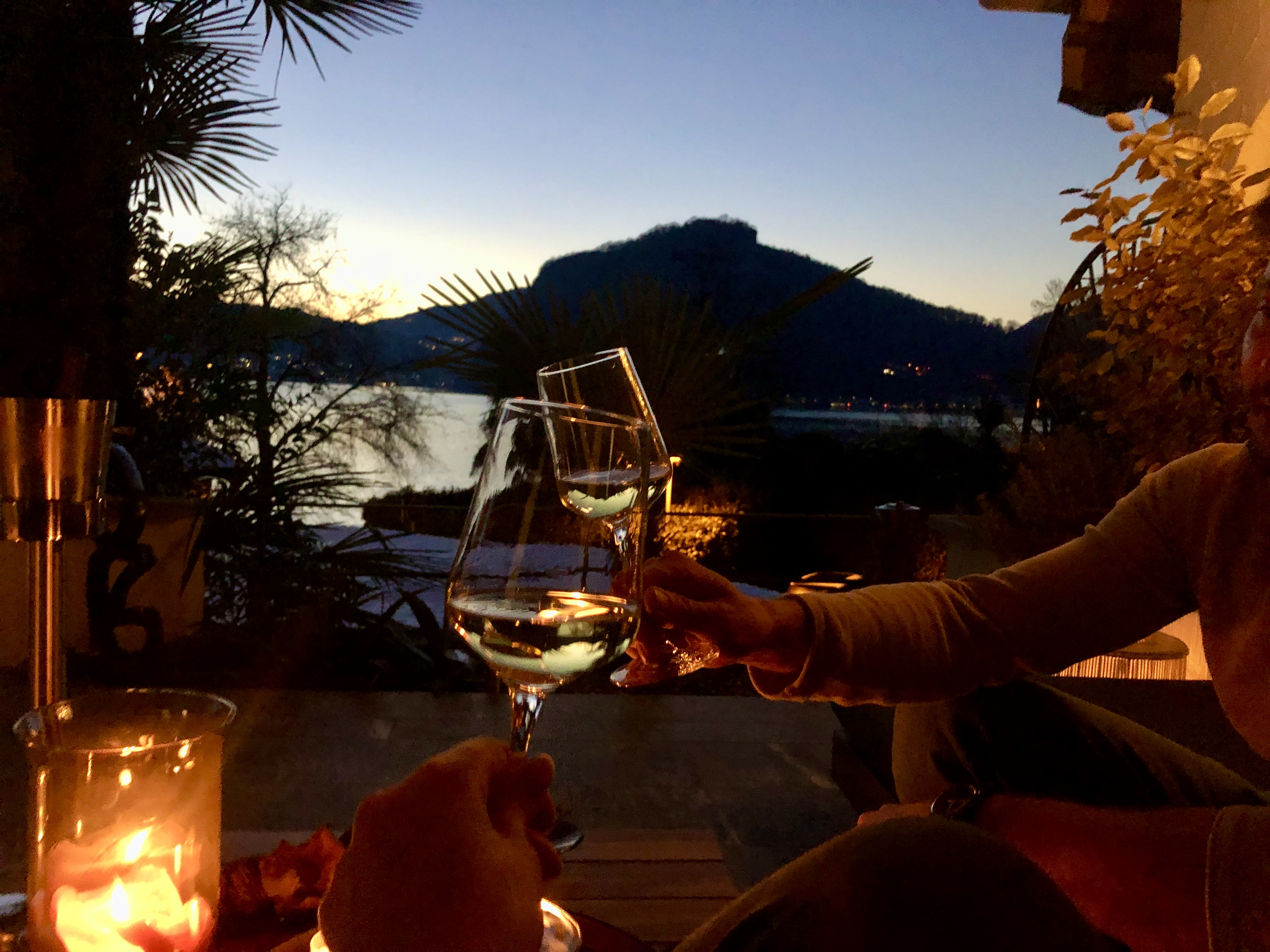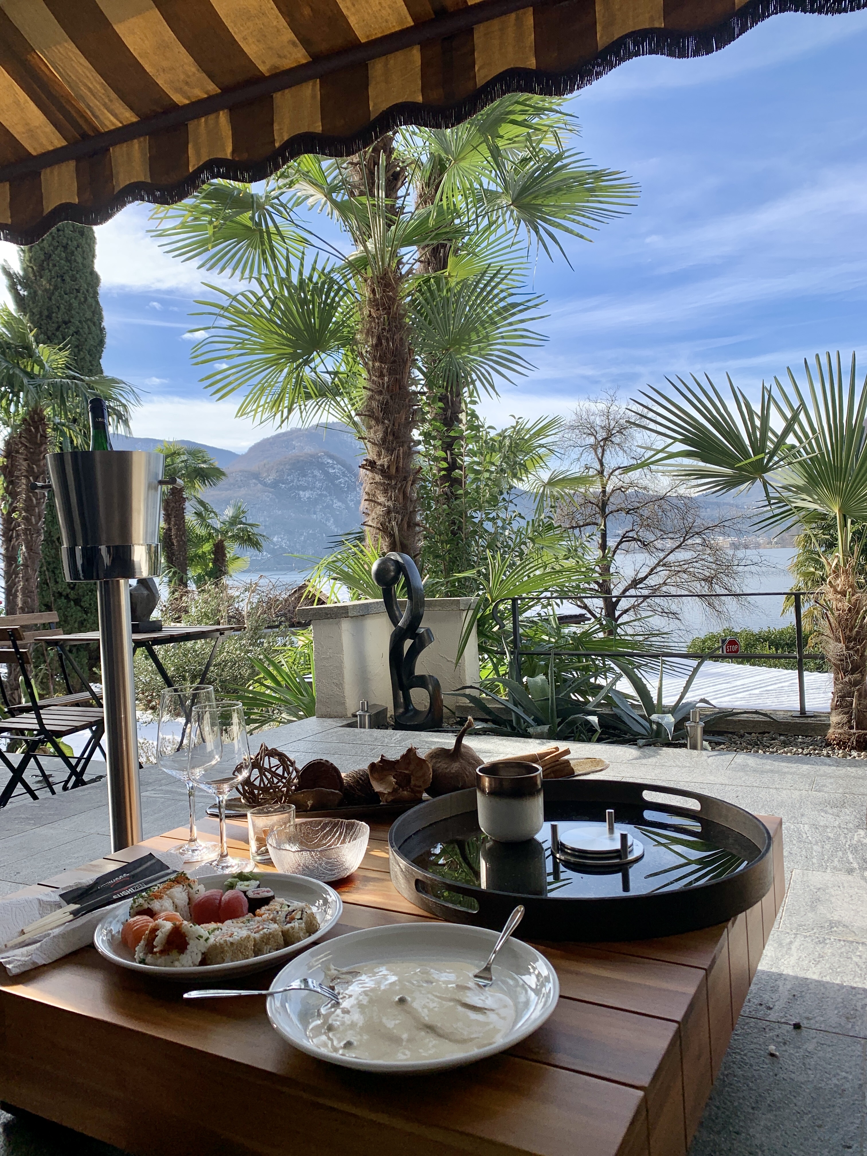 Like the rest of the world our lives have changed and many of us have found ways to stay sane, healthy, and grateful for all we have despite all the chaos of Covid-19 . In Switzerland, my home, more restrictions were implemented before the holiday. This means many will not be with their families for the holidays this year. Despite our travel limitations due to the lockdown we found ways to stay positive, and focus on the small things that truly matter in life. For the New year weekend we booked a lovely AirB&B in Lugano which did not disappoint. We went food shopping to our local supermarket and made sure we stacked up our refrigerator for the next few days. On arrival at our little flat, we settled in and enjoyed a beautiful lunch and wine al fresco with this stunning view.