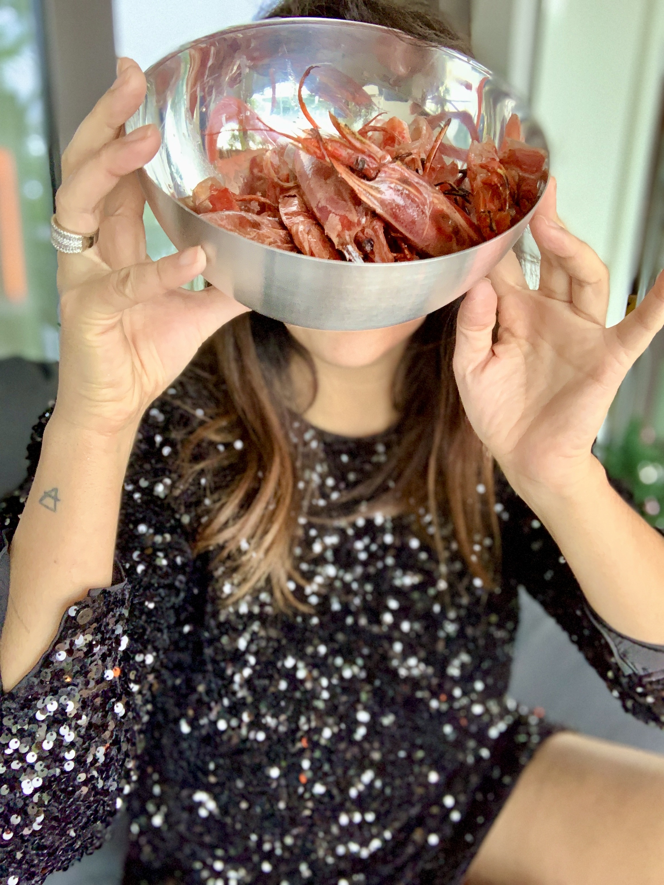 Big New Year’s Eve parties were never my thing so this year it did not feel any different. A bathrobe dinner followed by a bottle of champagne, and if I manage to stay awake until midnight for sure a few more cheers and called the night. Instead, I prefer to welcome the New Year fresh and well rested, followed by an easy cook up seafood brunch and that is exactly what we did. I prepared some delicious grilled carabineros aglio e olio (garlic and olive oil) large blinis added a little horseradish and threw in smoked salmon, dill , salmon roe and chili eggs for a little kick, and for us that was just beautiful. Happy 2021 to you all!!!